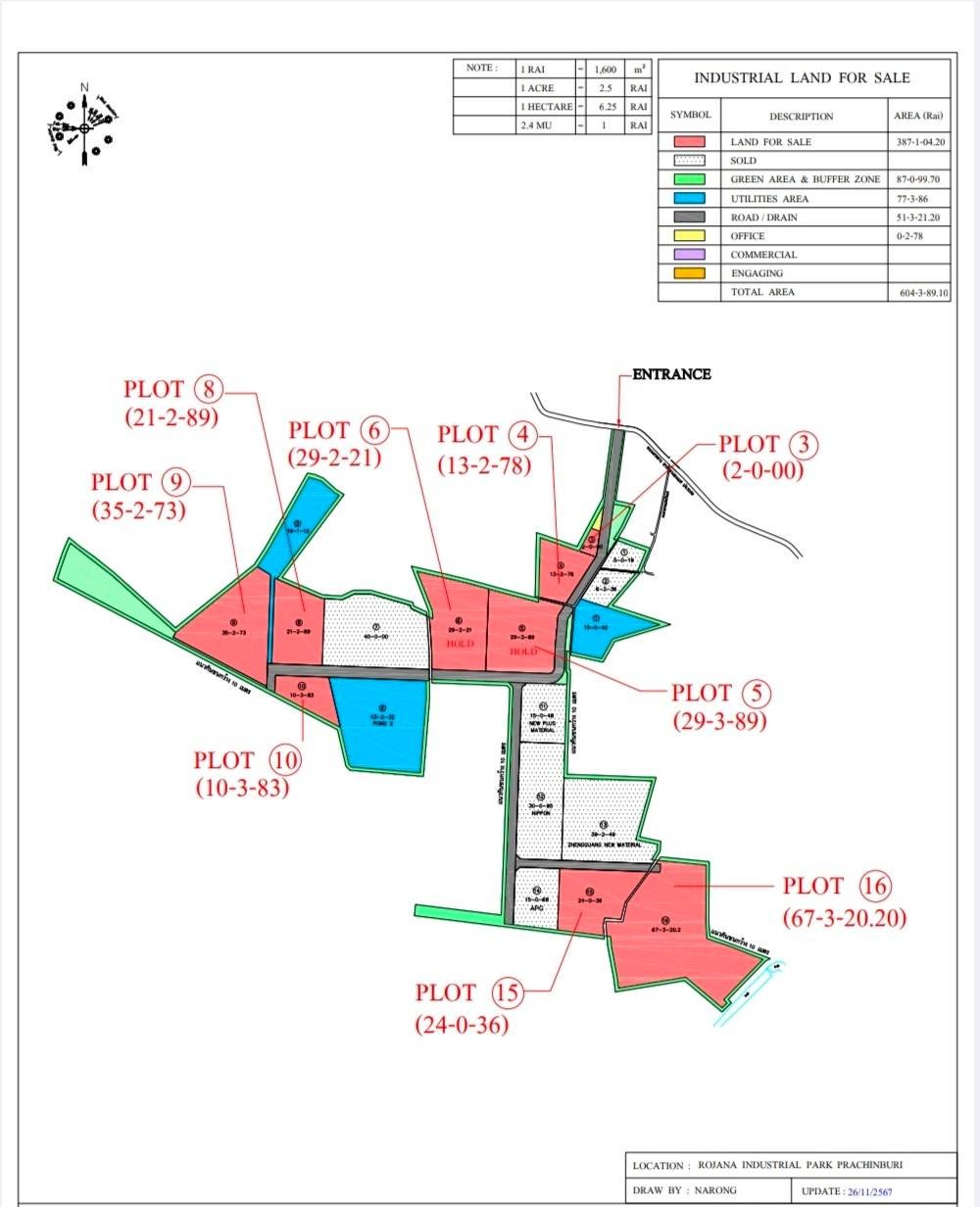 巴真府 | Sri Maha Phot县,Rojana工业园区里空土地出售 AO-2025-01-34