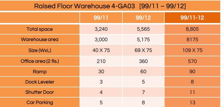 仓库面积:3,000平方米