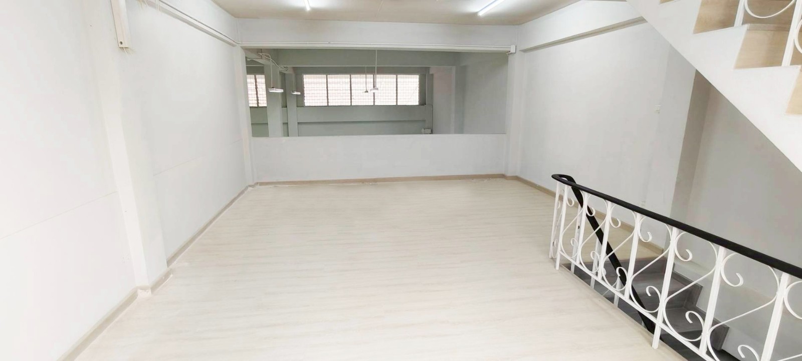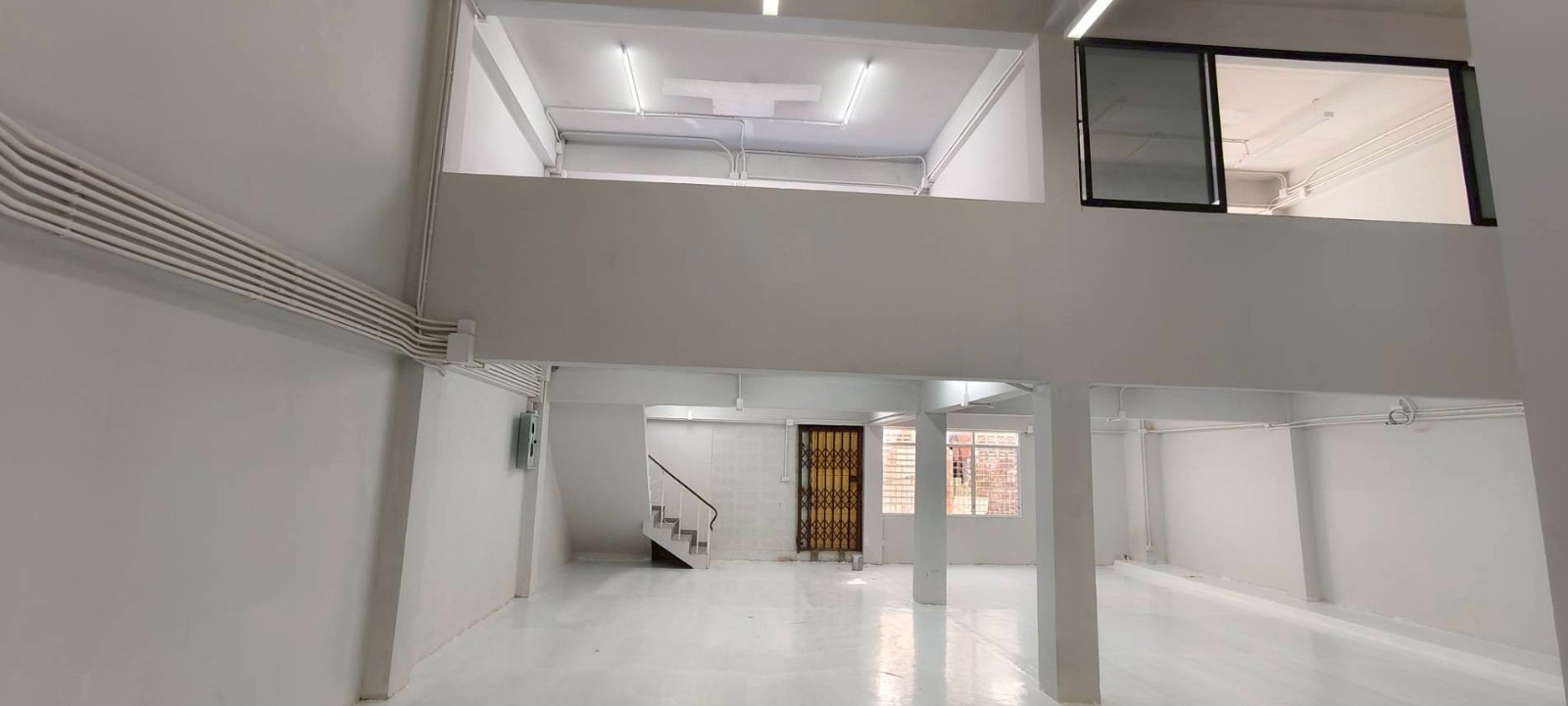 1 楼:多功能空间,Epoxy 地面易清洁,后区可灵活使用(18.90 × 9.00 米),挑高 4 米