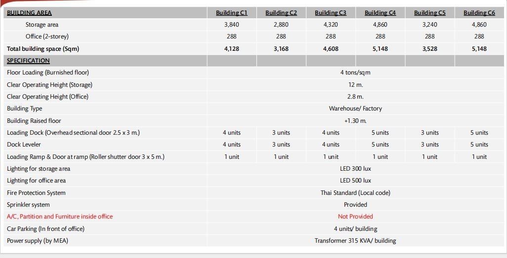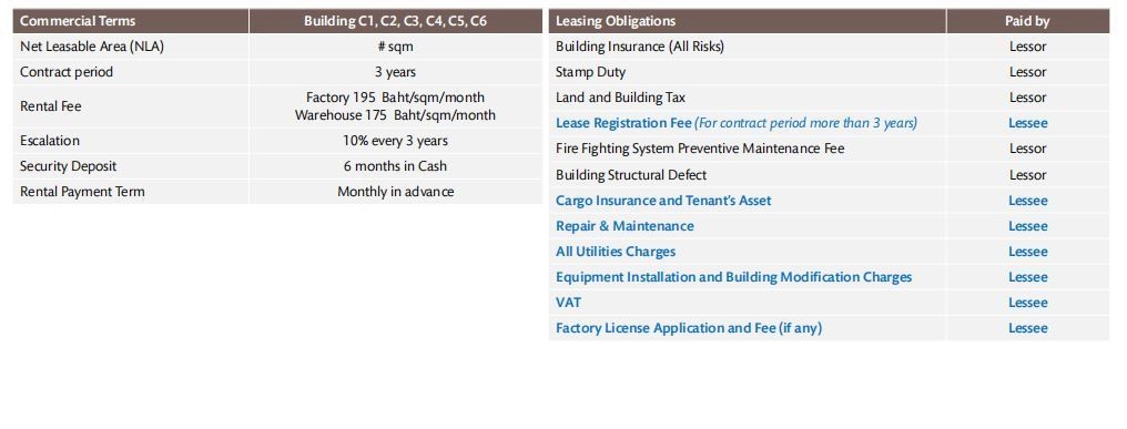 工厂租金:195 泰铢/平方米/月