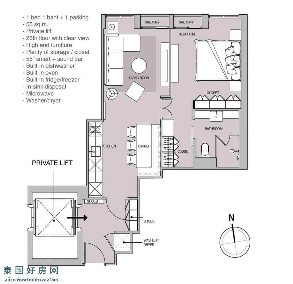 出租:55,000泰铢/月,押二付一,一年合同